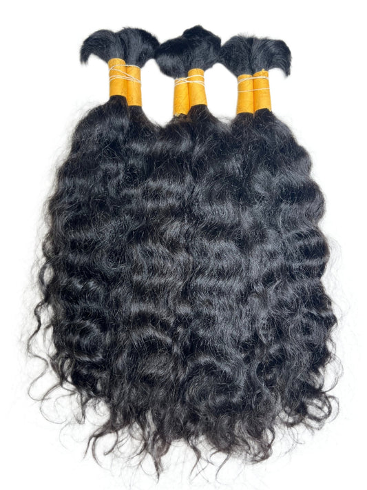 Extensões de cabelo humano premium – Natural Curly Bulk Liga Amarilla (Amarelo)